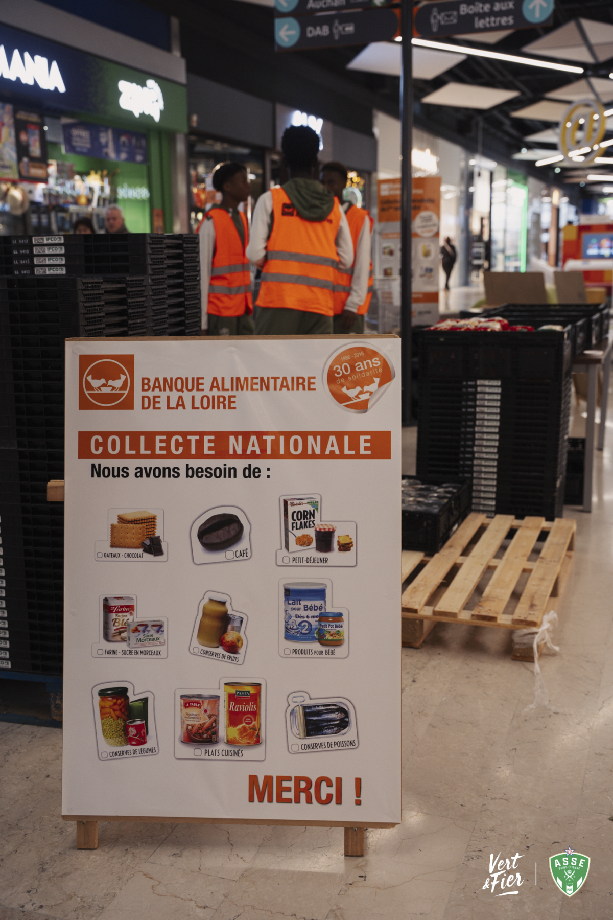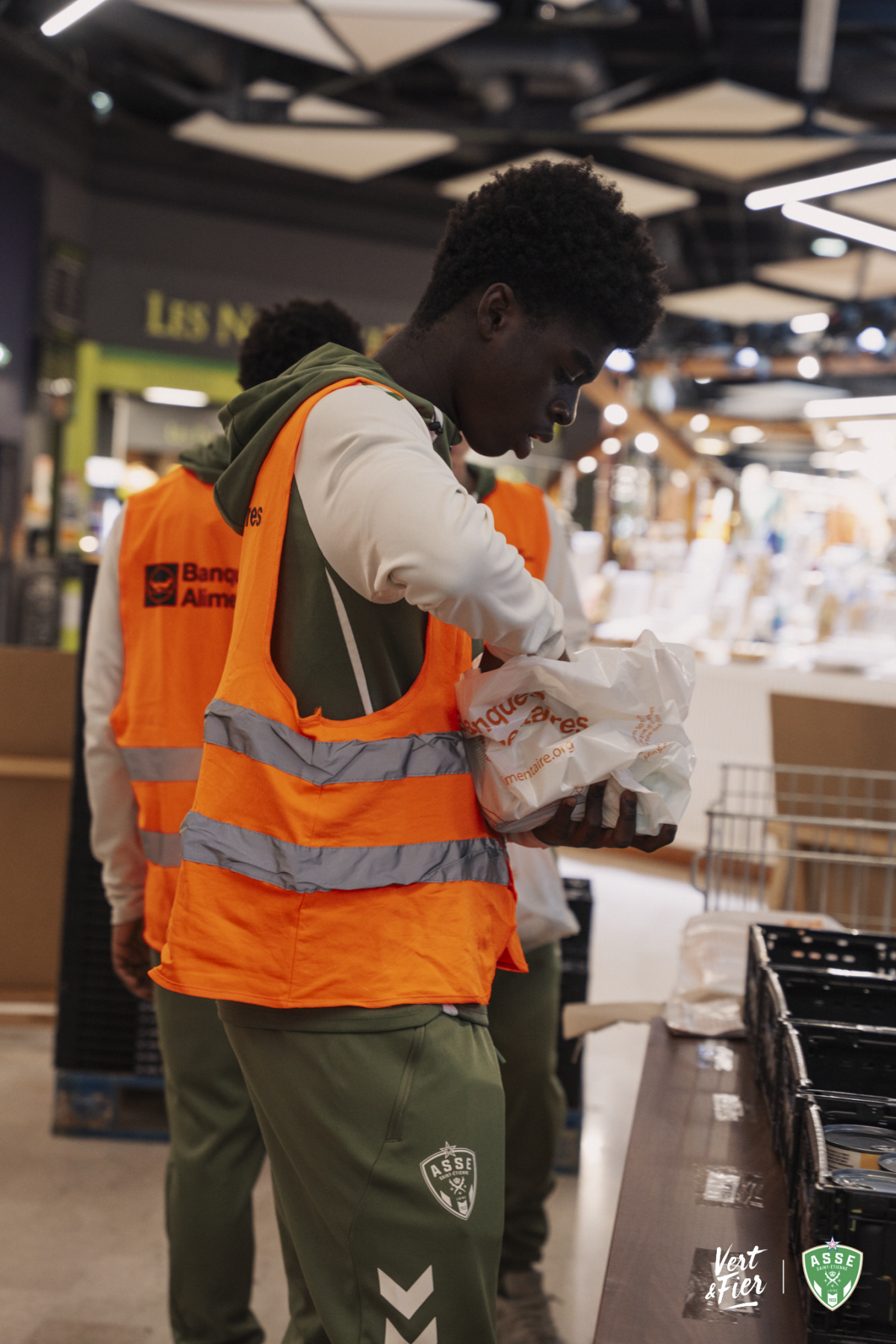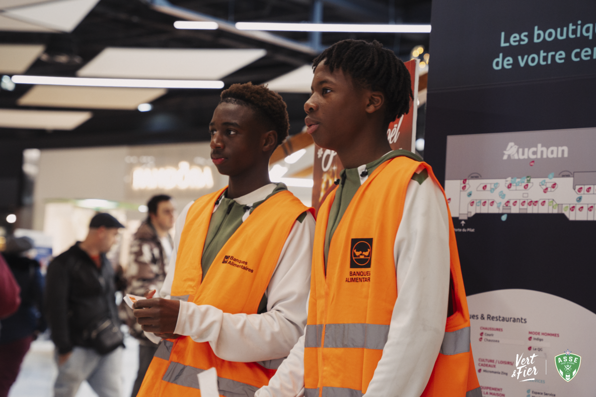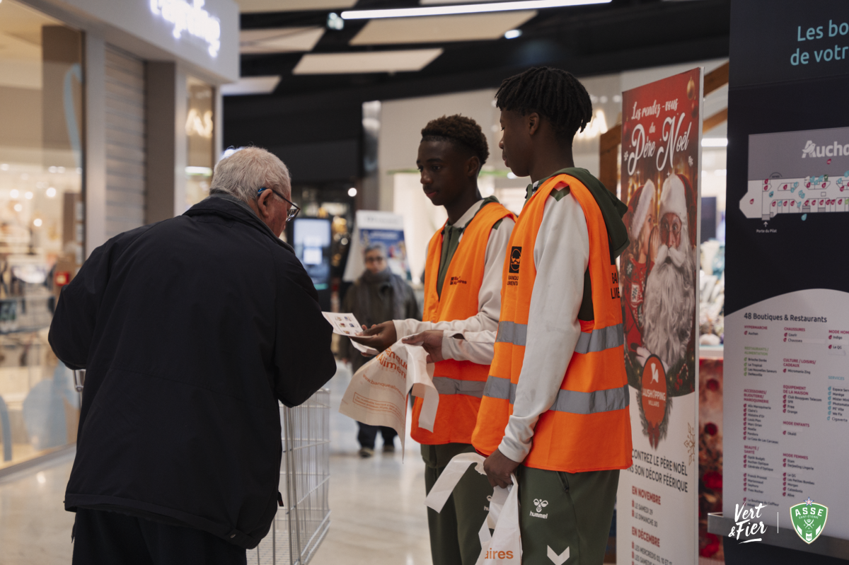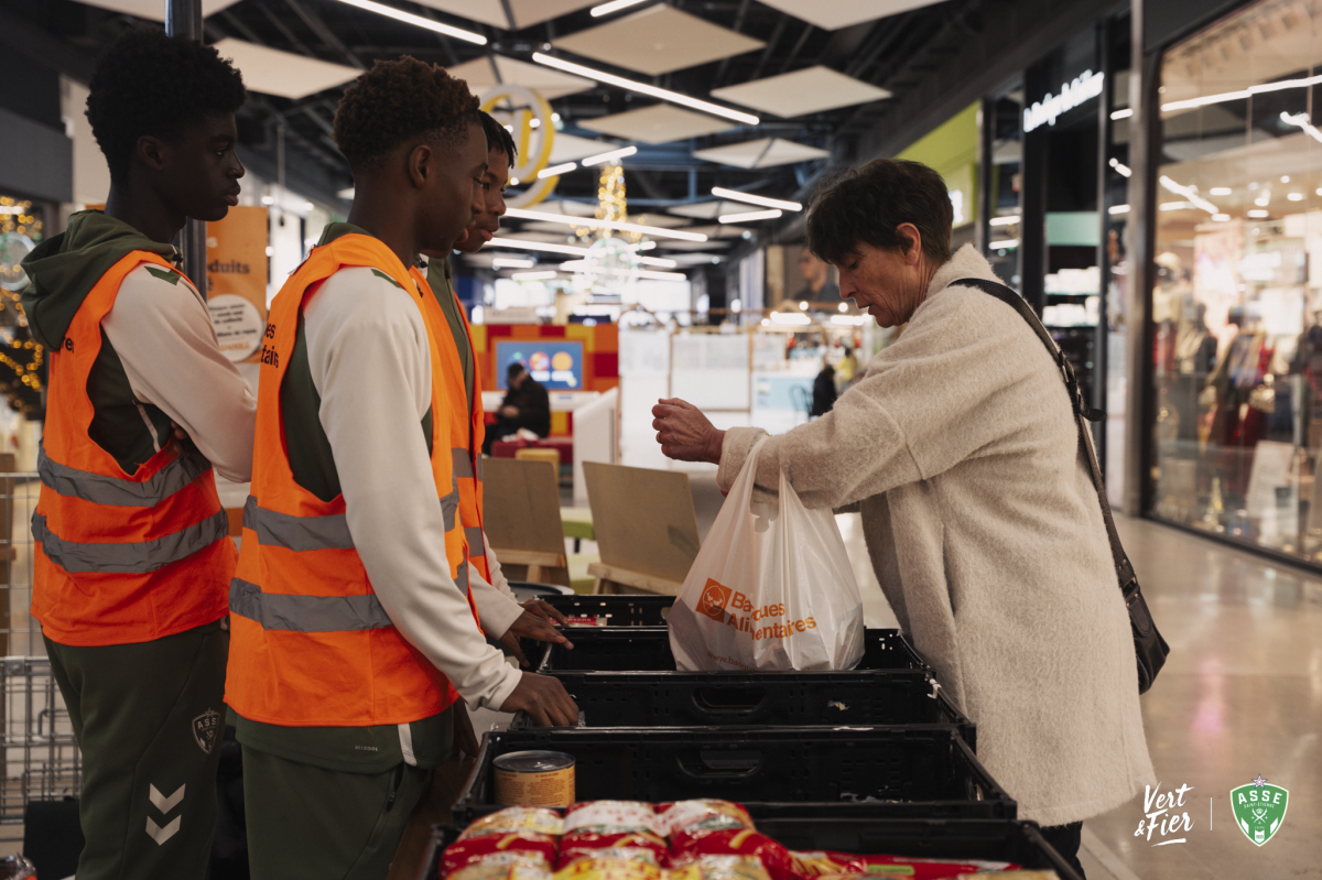 Parmi les acteurs engagés cette année, l’ensemble du groupe Avenir du centre de formation de l’ASSE a tenu un rôle important. Les jeunes joueurs se sont mobilisés dès le vendredi matin au centre commercial Auchan, situé à quelques kilomètres seulement du centre de formation. Sur place, ils ont récolté les denrées, informé les clients et apporté leur énergie au bon déroulement de la collecte.