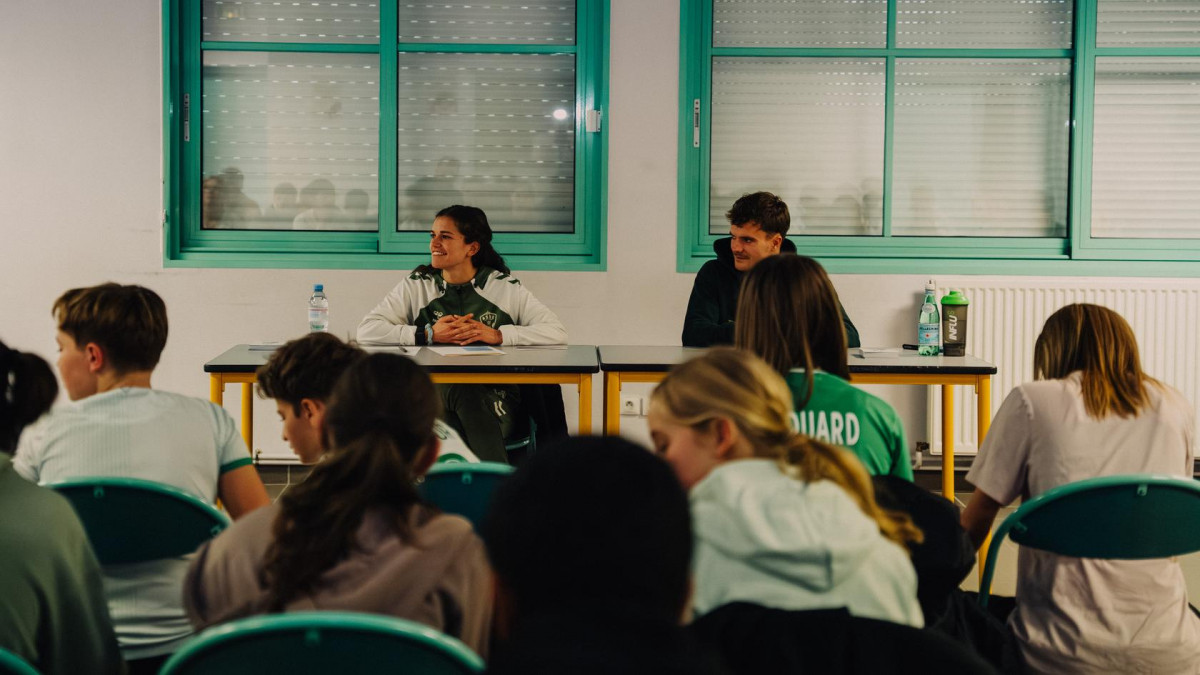 Accueillis plus que chaleureusement par l’ensemble des élèves du Collège, Rachel Corboz et Ben Old sont allés à la rencontre de deux classes de 4e pour échanger avec eux autour de leurs parcours de joueurs professionnels et des réalités de leur quotidien sportif et personnel.