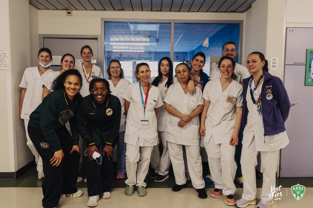 Ce jeudi 29 janvier, Alexandria Lamontagne et Nadjma Ali Nadjim se sont rendues au CHU de Saint-Étienne pour rendre visite aux enfants hospitalisés et au personnel soignant. À travers leur bonne humeur, leurs sourires et leur disponibilité, les deux joueuses ont apporté un véritable moment de réconfort et de joie au sein des services.